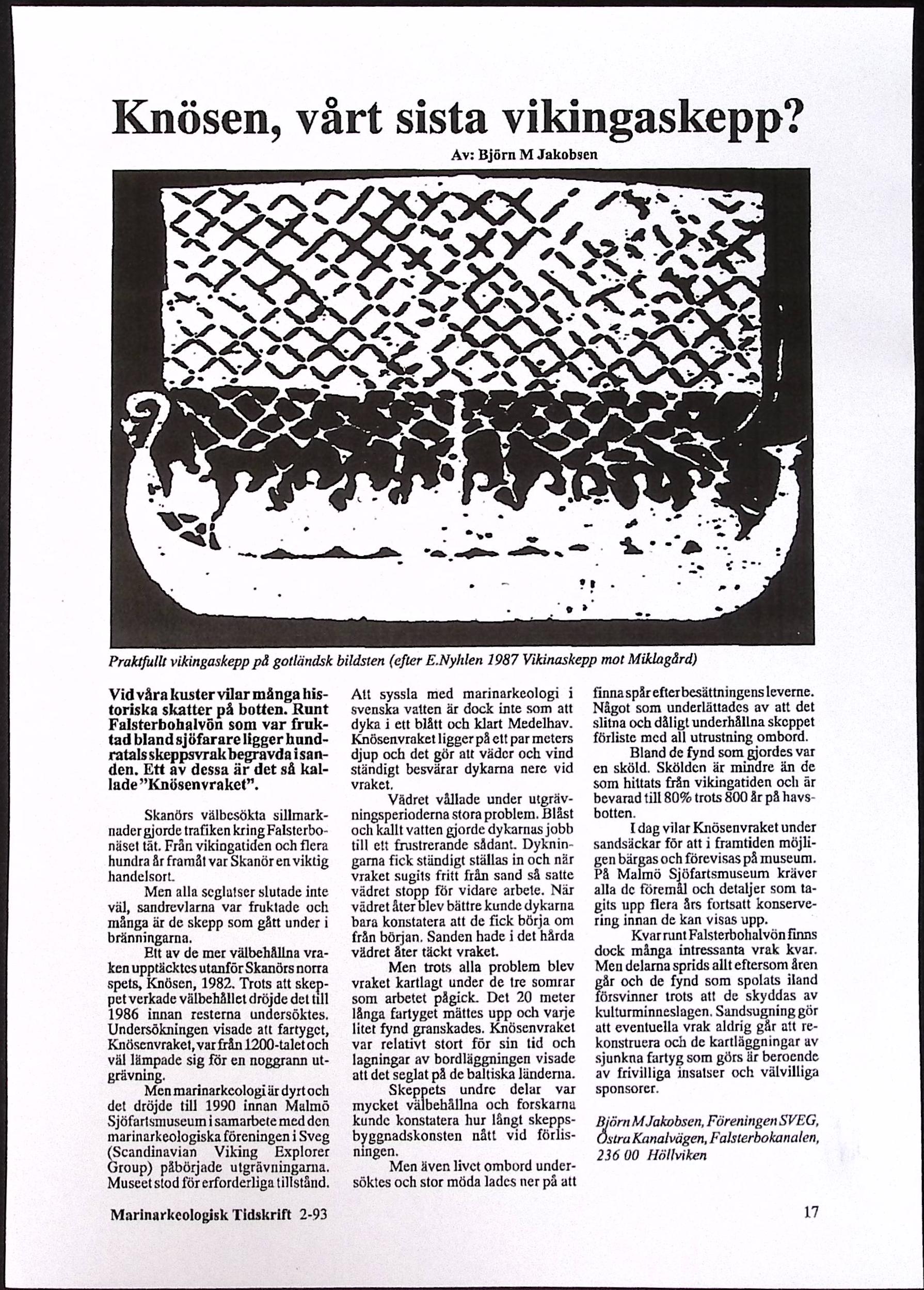 Ett stycke norr om skånska Skanörs udde, i ett område kallat Knösen, påträffades för första gången 1982 lämningarna efter ett skepp som efter undersökning och dokumentation visade sig vara från mitten av 1100-tal. Vid ett flertal tillfällen under den kommande tioårsperioden gjordes undersökningar som efter hand gav mer och mer information. Vid den avslutande grävningen 1992 hade man frilagt och dokumentarat i det närmaste hela vraket. Vraklämningens längd är 17 m och bredden är ca 4 m. Trots att endast vrakets bottenparti är bevarat kunde förvånansvärt många och ömtåliga fynd göras.